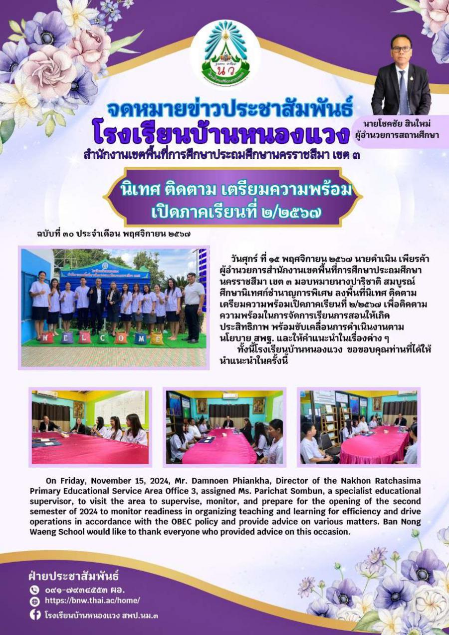 นิเทศ ติดตาม เตรียมความพร้อมเปิดภาคเรียนที่2/2567